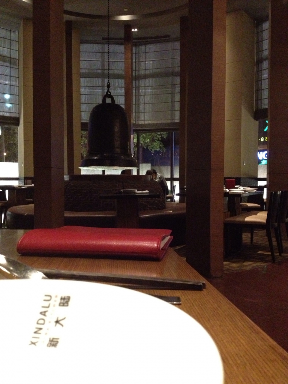 店内は奥に広まっていて割とゆったりした造りになっています。大きな鐘がぶら下がっていて趣があります。