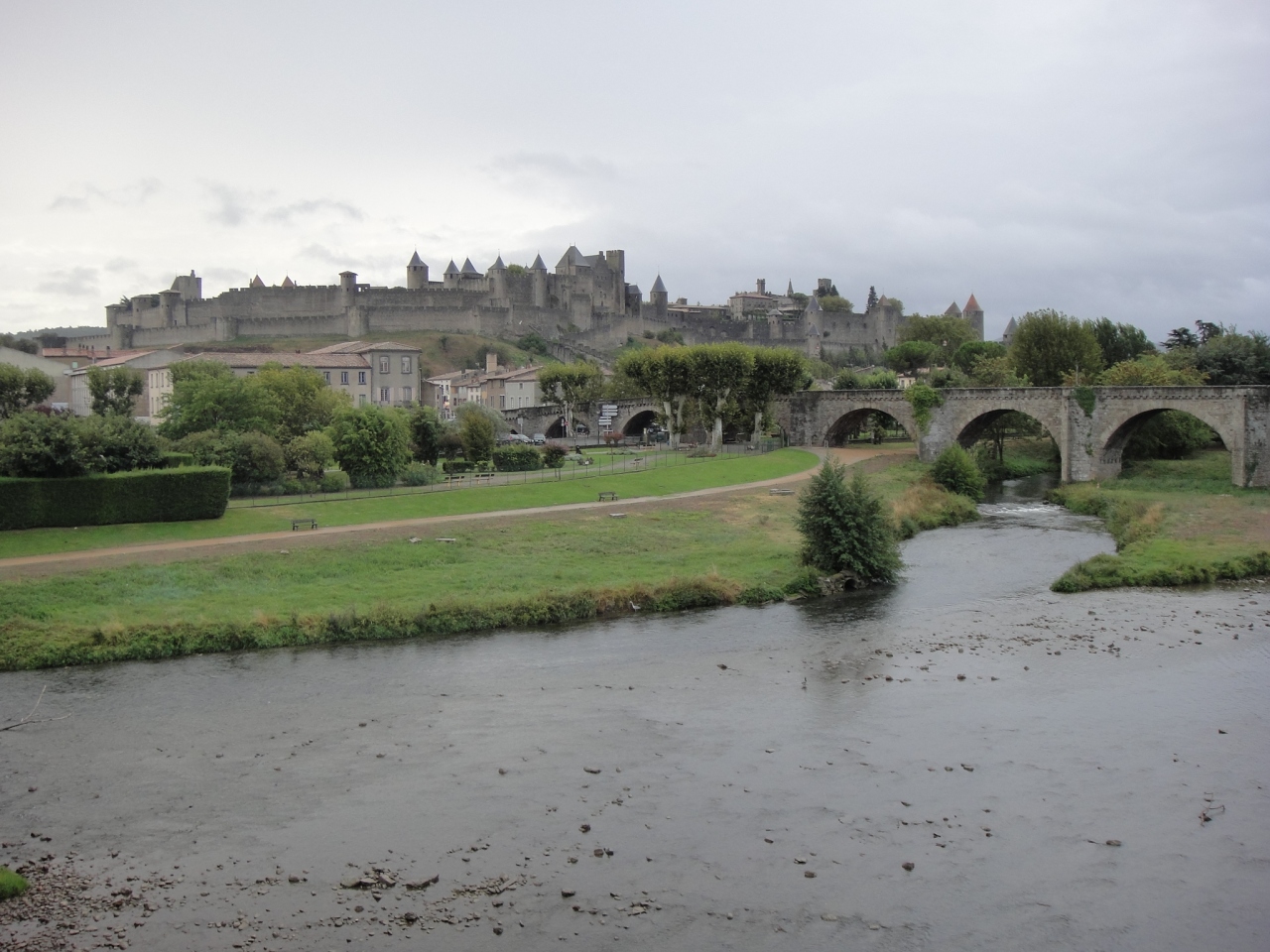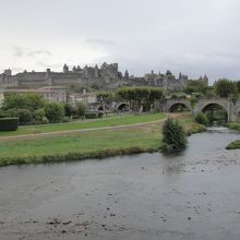 カルカッソンヌは紀元前2世紀には要塞化が始まり、6世紀には町が城壁で覆われました。オード川にかかるヌフ橋からは、城壁に囲まれた一群が見えます。シテの中には大聖堂や城、家々が建っています。