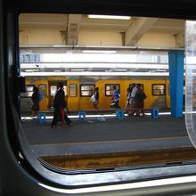 駅は、広々としていて電車の時刻ボードやインフォメーションもあり