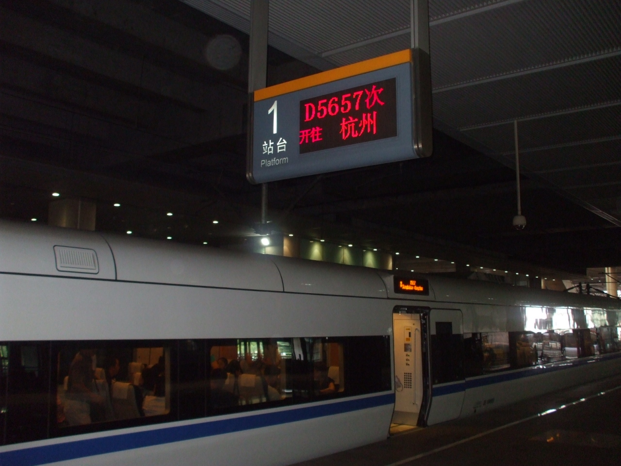 上海南駅から杭州まで和階号を利用していきました。とても混雑しておりましたが、あっという間に杭州駅に到着しました。列車によっては杭州駅ではなく、南駅にいってしまう和階号もあるので停車駅には注意した方がよいと思います。