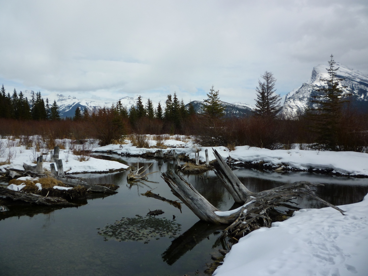 3月に訪れたバンフでここバーミリオン湖が唯一凍っていませんでした。ガイドさんの話では、温泉が湧き出ているので、部分的に凍らないそうです。触ってみたら確かに温かかったです。