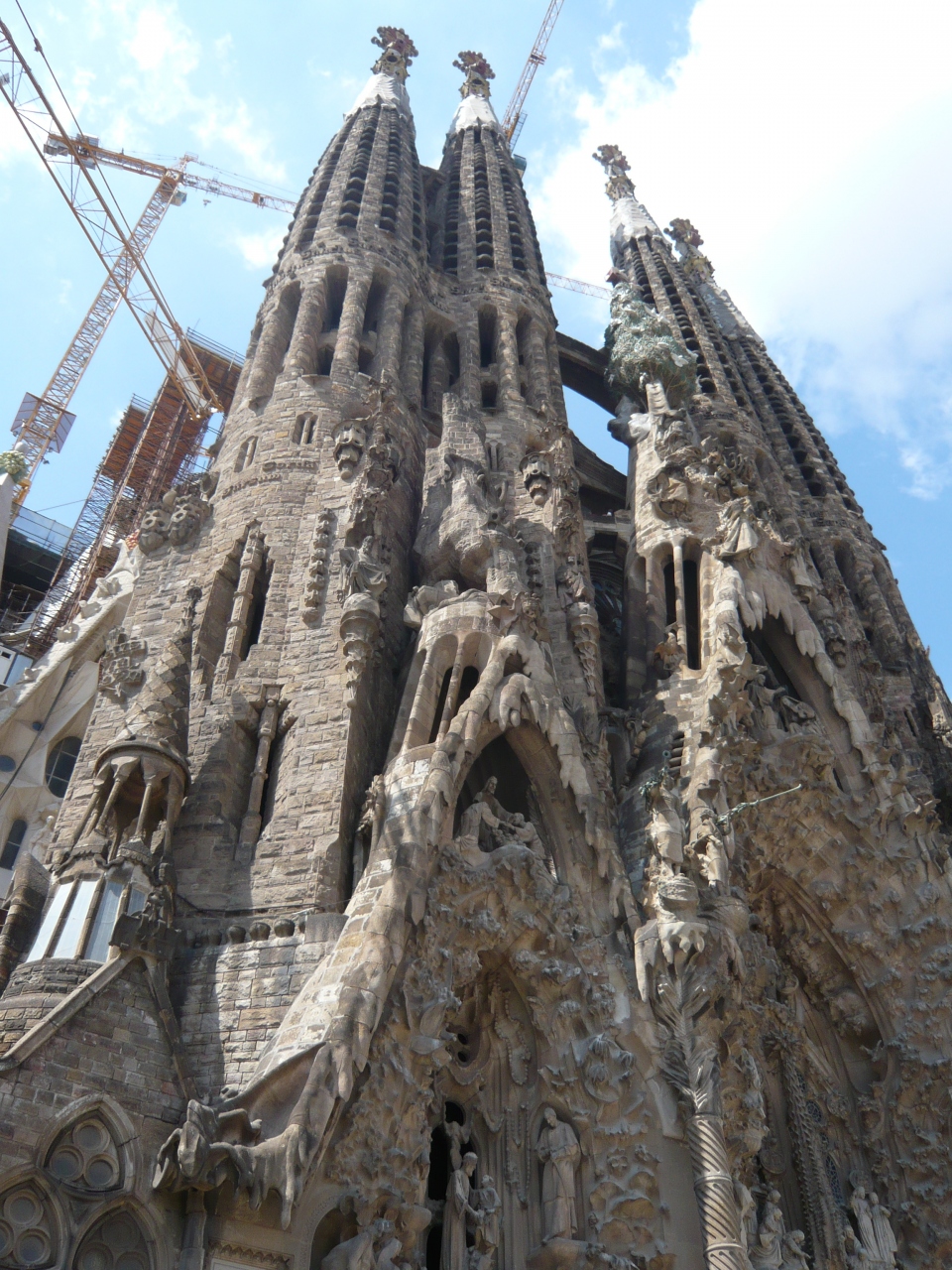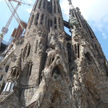 世界で最も有名な建築家の一人、ガウディの最高傑作といわれるサグラダファミリア教会。駅の改札をくぐると見えてくる圧巻の建築物。細かいレリーフも遠くから眺める全貌もすべてが素晴らしい。中は、工事現場のように足場が組まれている。