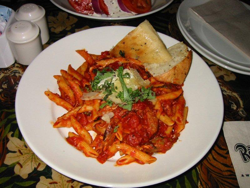 お料理は、まあアメリカでの食事、全般に言えることですがやっぱり量が多いです。サラダとパスタを一つずつ注文して二人でシェアして食べてちょうど良かったです。味はちょっと大雑把な感じはしましたが、美味しく食べられました