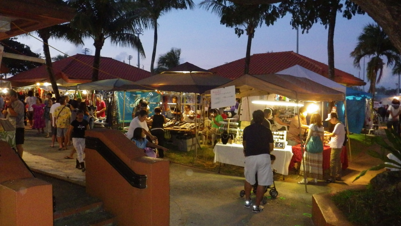 一回りして、いい匂いがするので1ドルの串焼きを買って食べたらおいしかった。