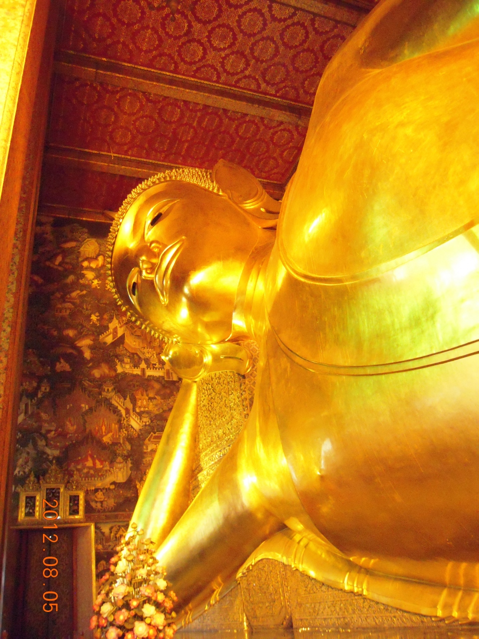 タイ旅行の楽しみな一つでした、ワットポーを見学してきました。ガイドブックにも必ずと言ってよいほど、写真付で紹介されていますが、それと実際に生で見るのでは、迫力が全く違い、その大きさに只々圧倒されてしまいます。
