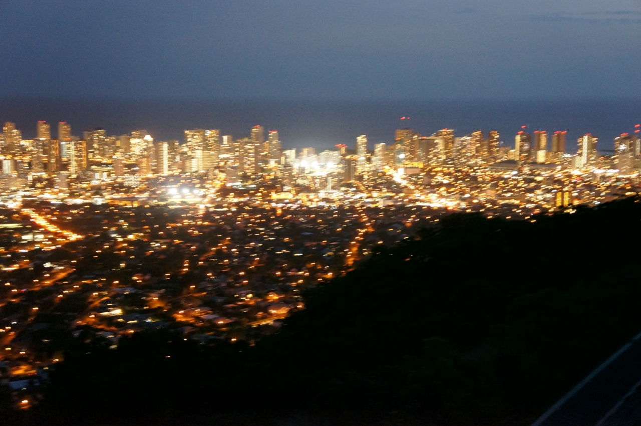 夕焼けをワイキキのビーチでみてからタンタラスの丘で夜景を見るというツアーに参加しました。