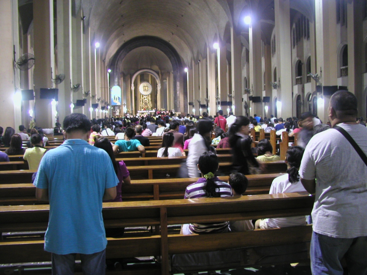 マリア様に捧げる花(サンパギータ)の売り子(と言っても老人が多い)が少ししつこいですが、それをかわし中に入ると、マーケットと変わらず人で溢れているのに、マーケットの喧騒とは打って変わり、皆静かに祈りを捧げており、厳粛な気分になります。