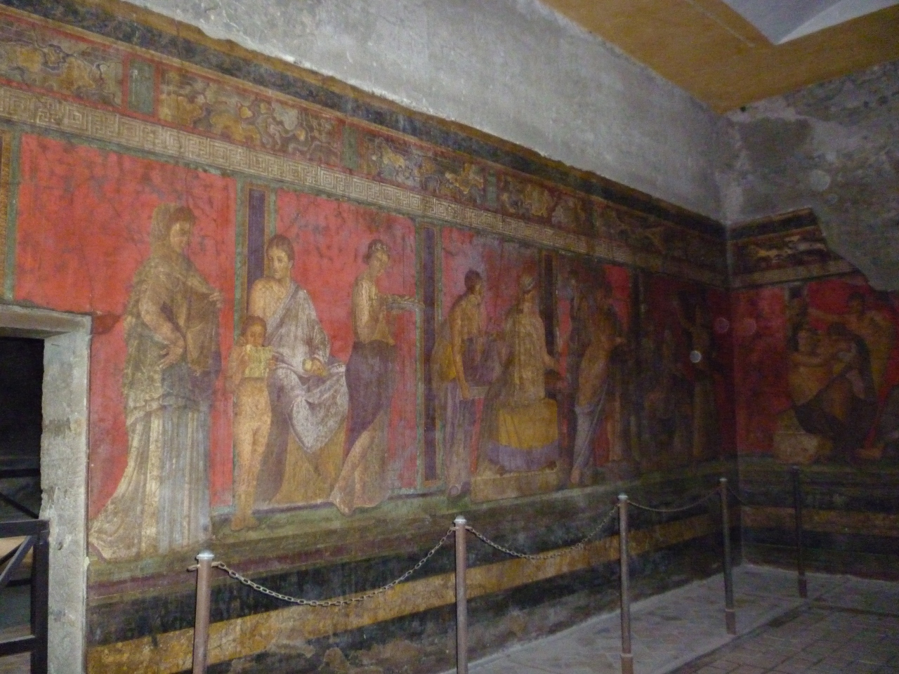 ポンペイ遺跡の一部ですが、ここは遺跡群からは少し離れていて、城壁の外にあります。当時のお金持ちの邸宅(別荘?)だそうで、壁画が有名です。火山灰に埋もれていたにもかかわらず、鮮やかな壁画の数々が残っていました。