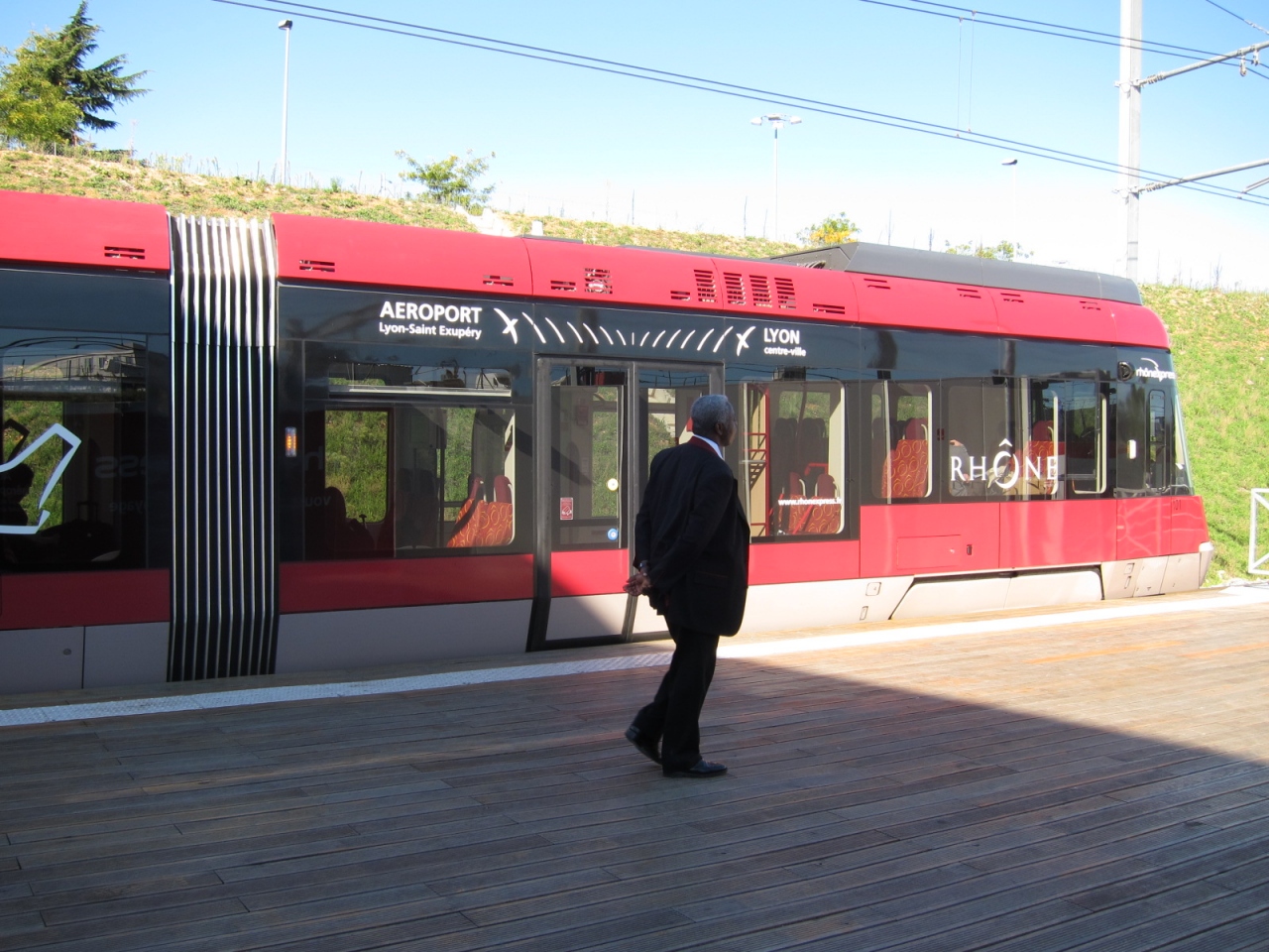 Lyon空港と、Lyon市内の交通の要所の1つであるLyon Part-Dieuを直接結ぶ交通アクセスです。Lyon空港側の駅は、ホームがウッドデッキになっていておしゃれな感じでした。本数が少なくて(30分に1本)、値段が高いことが難点。