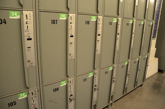 ロッカーは大きさによって、3ユーロのものと4ユーロのものに分かれて並んでいます。