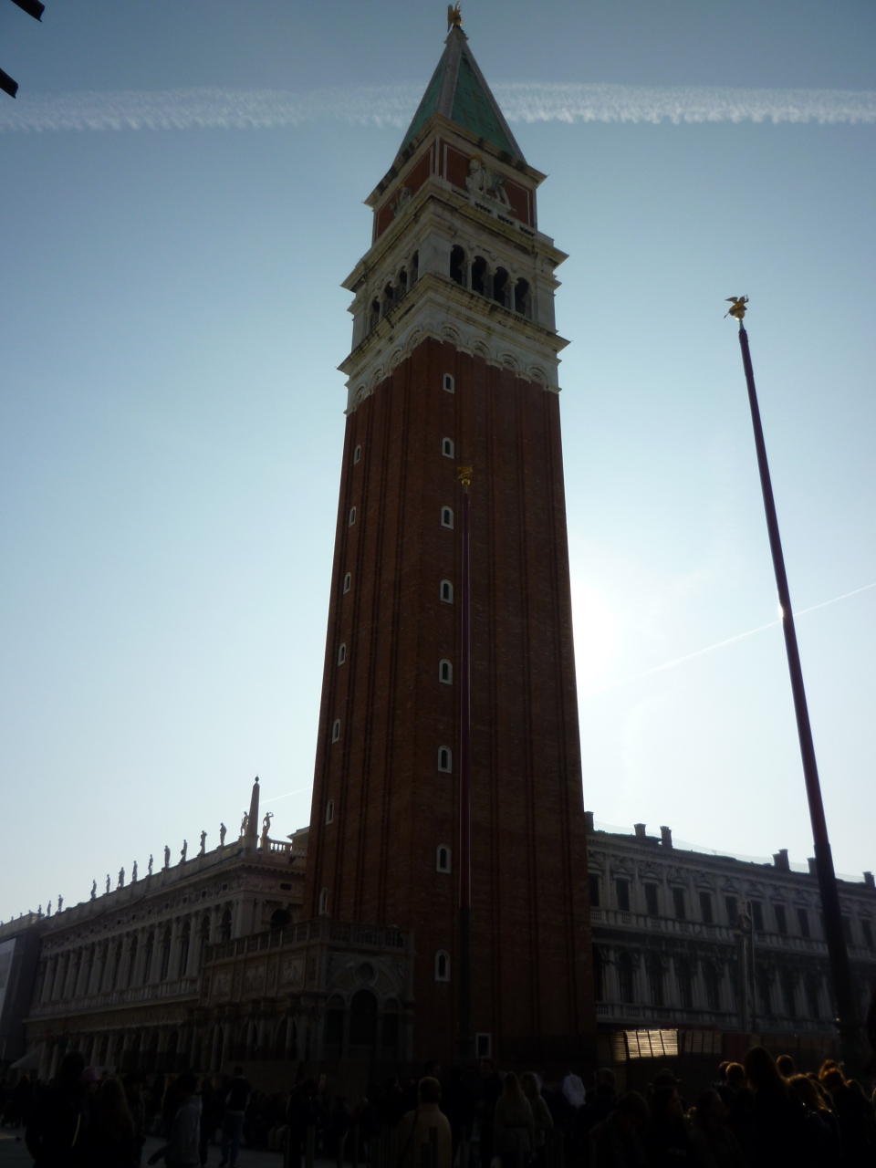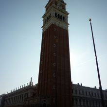 サン・マルコ広場にある高さ約100mの鐘楼です。頂上からはヴェネツィアの街が一望できます。茶色の屋根の先には海の青が広がりきれいなコントラストでした。鐘楼の頂上まではエレベーターで昇れるので楽ちんです。