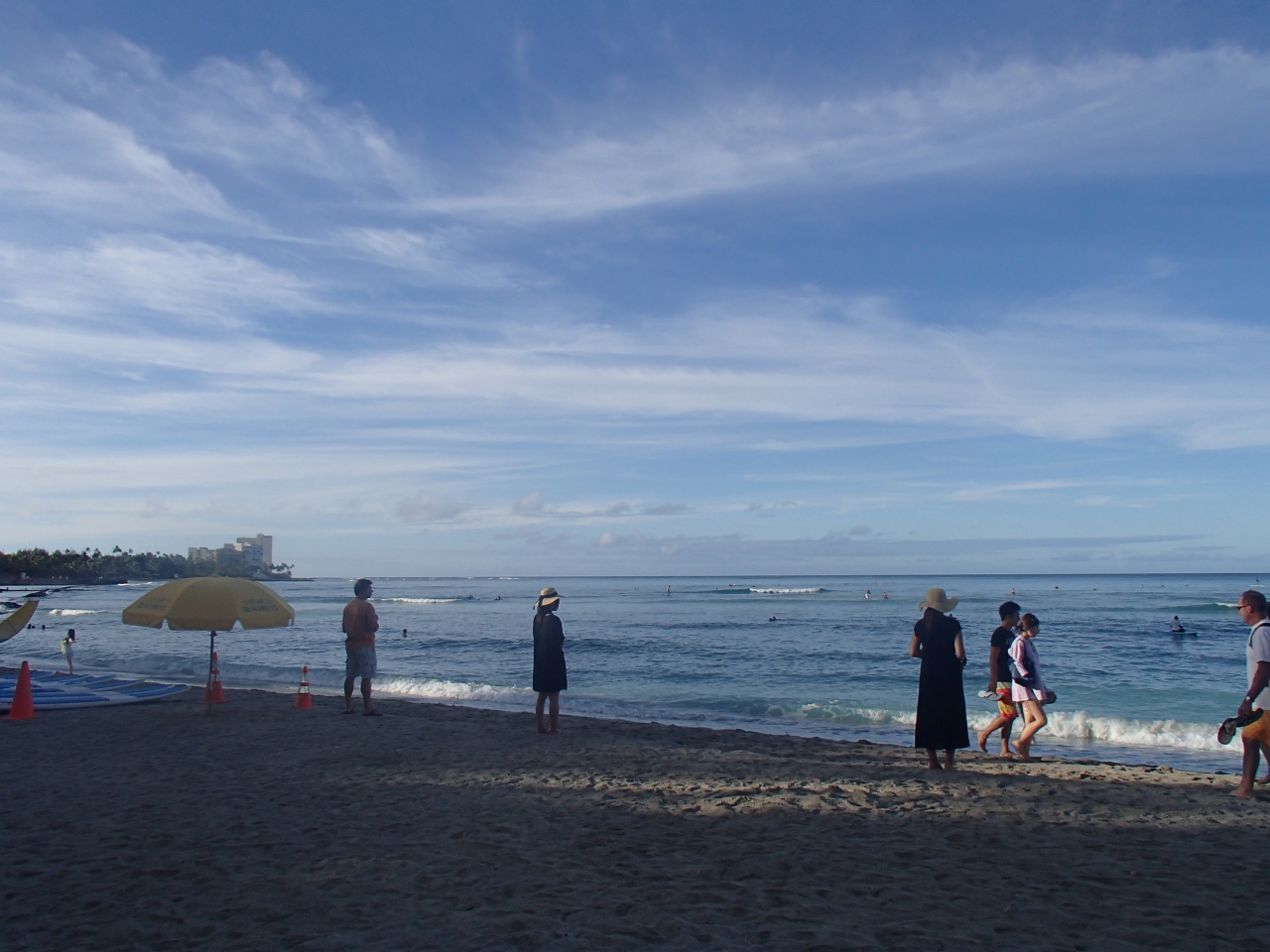 宿泊したホテルのすぐ目の前にあったので、訪れてみたら人の多さにびっくり。朝方はサーフィンを行っている人や散歩、ランニングしている人がちらほらいるくらいで空いていましたが、日中ともなると沢山の人で溢れ返っています。混雑しているイメージから、水の色もそれほど綺麗ではないだろうと思っていたら、意外と綺麗でした。