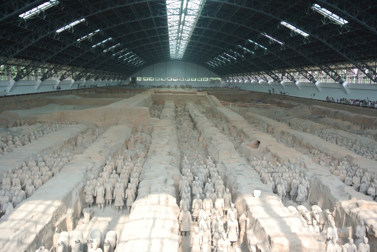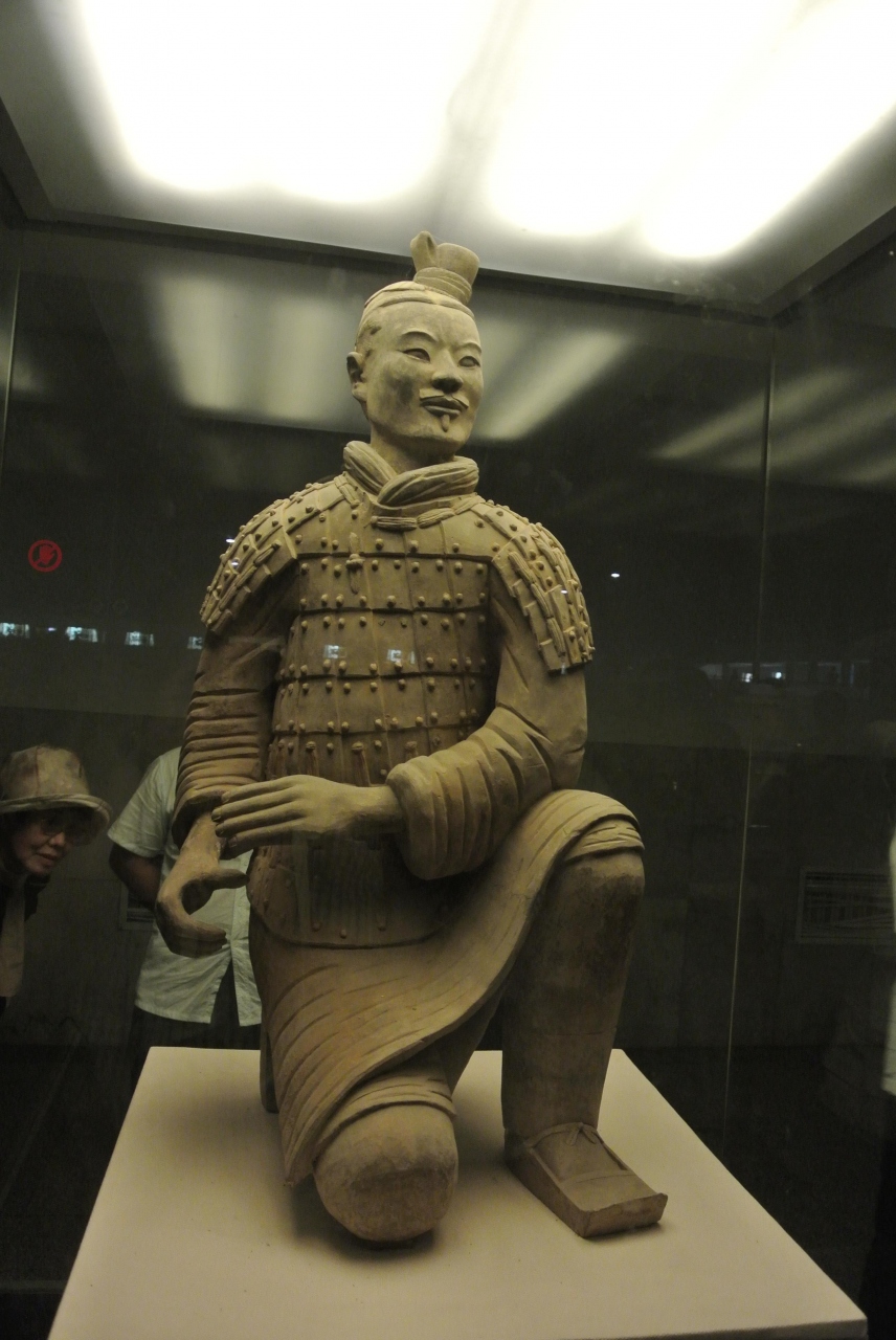 サッカー場が入ろうかというぐらい広い構内一面にい並ぶ人形の大軍団はただただ息を呑むほどの圧倒的な迫力を感じます。現在でも発掘が継続中というのもこの規模を見ればうなずけます。特に表情の良い人形は、別棟の展示楝で間近に見ることができます。こちらも必見ですが、周囲は常にこんでいます。ですが団体は流れていきますので、数分間も粘っていると空いてきてよく見ることができます。