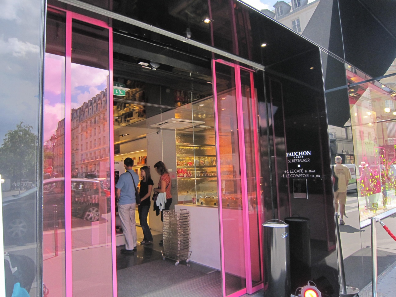 マドレーヌ寺院の正面にあります。チョコレート等のスイーツ、ジャム類、紅茶類、瓶詰めの食材も豊富で、品揃えは日本のお店ではかないません。また、店内はピンクと黒を基調にしていて、食材との配置もよくて見て回るだけでも楽しめます。