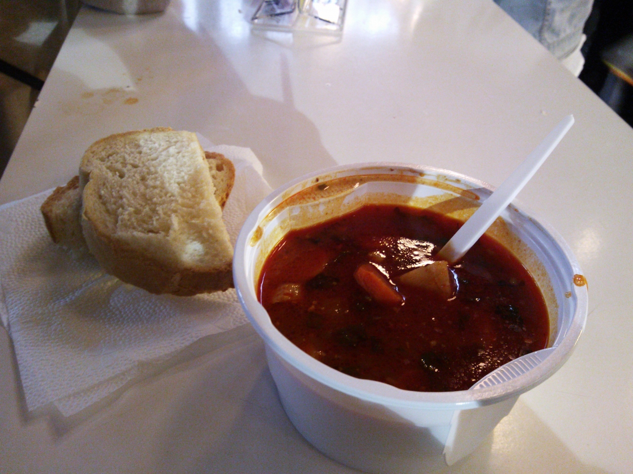 私はよくわからず、奥の空いているお店でグヤーシュを注文しましたが
