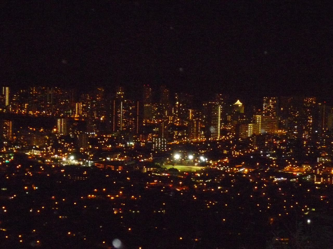 オレンジ色の綺麗なホノルルの灯が見えます。