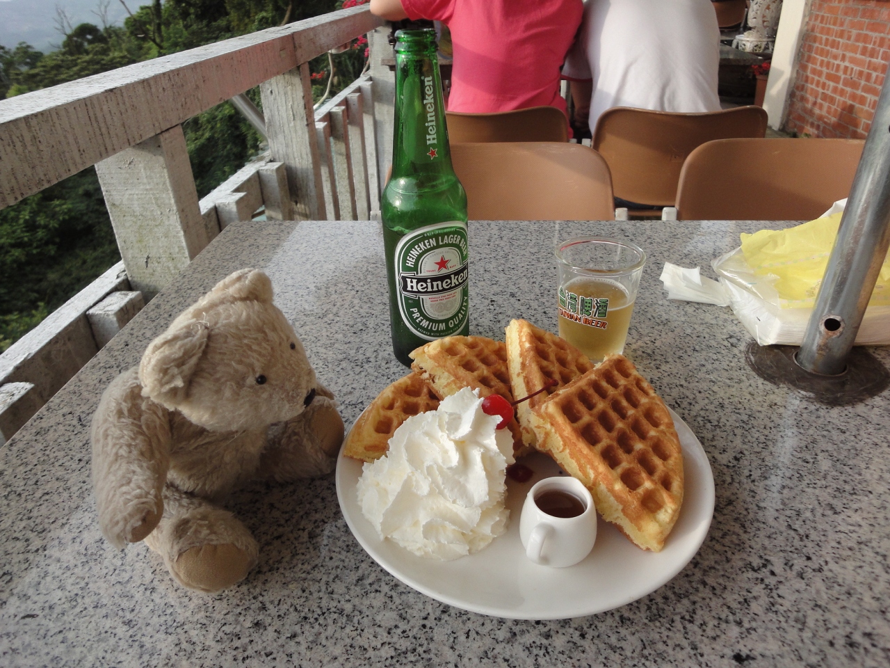茶畑を眺めながら、茶館でまったり中国茶を楽しむの図を期待していったのですが、こじゃれたカフェみたいお店が多く、オール中国語のメニューであたりをつけて、中国スウィートをオーダーしたつもりが、頼んでいたのはワッフルでした・・・