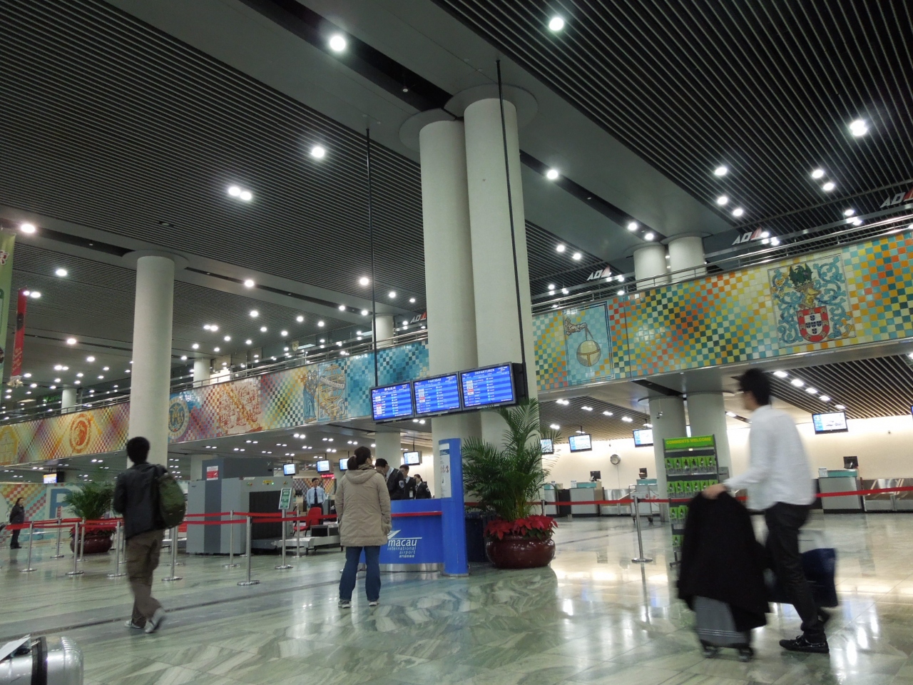 マカオ航空で関空から出発しましたので、マカオ国際空港を往復利用しました。LCC?にあたるので座席ピッチは狭いです。到着したときは入国が5分とかかりませんでしたので、ラッキーでした。出国する際に空港の小ささを思い知らされました。レストランというレストランは殆どありません。食事は期待しないほうがいいです。