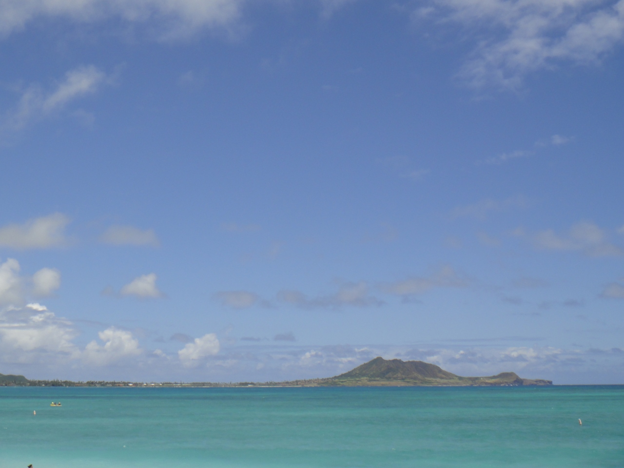 アラモアナからバスと歩きで約1時間掛けて行きました。アラモアナから山を越える時は天気も悪く、ビーチは期待できないと思っていたら、山を下りてカイルアの街に入ると一気に晴れ渡りました。