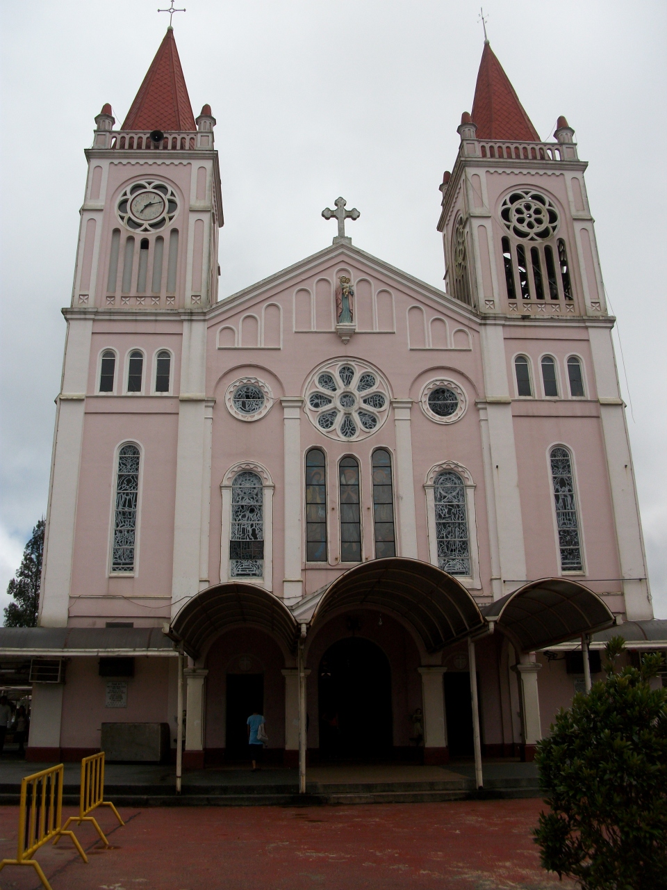 建物自体はピンク色の可愛らしい教会で、中は美しいステンドグラスの窓をみることができます。休日はミサやコンサートをやっているみたいです。