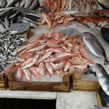 魚や野菜、スパイスなど食材を置いている店が多くありました。