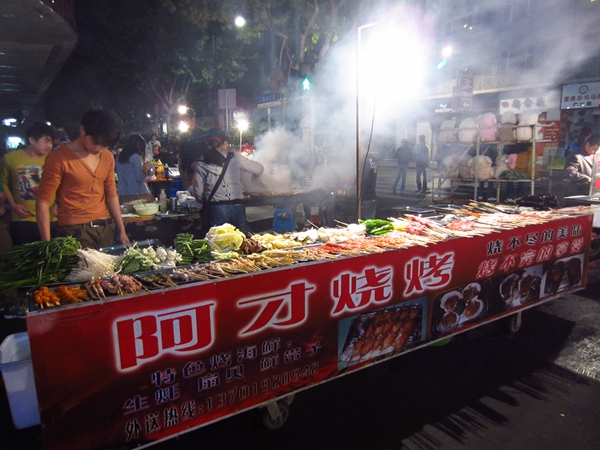 コンサートの帰り、虹口足球場から歩いている時、多倫路で夜市を発見。こんなところに夜市があるとは…!とのぞいてみると、ちゃんとテーブル席もあり、寒空の下、串焼きなどを食べている人の姿がありました。小規模ではありますが、もくもくと上がる煙につられて、人が結構集まっています。夜市をほとんど見かけない上海で、夜市に行きたいのであればここもいいかもしれません。