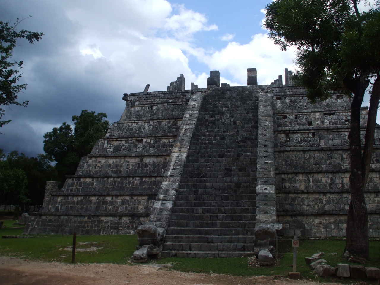 トルテカ系民族とマヤ古来の文明が混ざり合ったトルテカ・マヤ様式の建造物です。アメリカのカーネギー財団によって修復され、1994年に現在の形に復元されたそうです。広場に面しているほうが正面だと思うのですが、ククルカンがよくみえます。