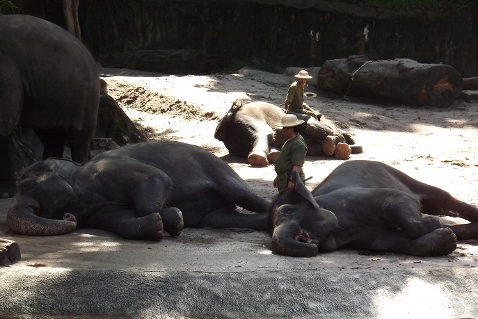 展示は楽しかった。何言ってるかは全然わからないけど象のショーがあったりとか、ホワイトタイガーやコビトカバとか珍しい動物が見られたので良かったです。