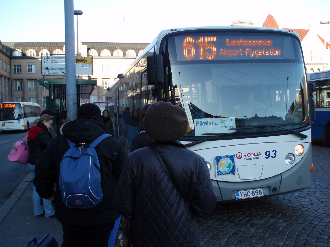 ヘルシンキ・ヴァンター国際空港から市内の中心地のヘルシンキ中央駅横の駅前広場rauta-tientoriまで市バス615番が運航してます。