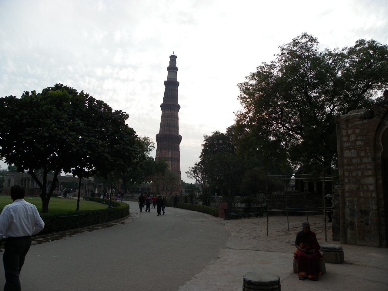 インド最古のイスラム建築群とのことで古さを感じさせます。色々な建物が廃墟となっているのですが、目立つのは高い石造りの塔です。もっと高かったのですが、飛行機がぶつかり上の部分が崩落したそうです。下の方はかなりの太さがあり、かなり頑丈に見えます。また造りかけの塔もあり、バベルの塔をなんとなく思い出しました。