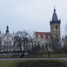 カレル広場の北側に位置する新市街市庁舎は、ルネサンス様式のいかにもプラハらしい歴史的建造物です。この付近には聖キリルと聖メトディウス教会や聖イグナチオ教会なども観光スポットになっています。