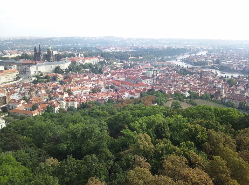 ペトシーン公園の丘の頂上にある展望台です。ケーブルカーを利用します。トラムと同じ一日乗車券で乗ることができます。入場はエレベータか階段かによって値段が異なります。自分は階段で頂上を目指しました。頑張って上った先には…息を呑むような美しい街並みが広がっていました。