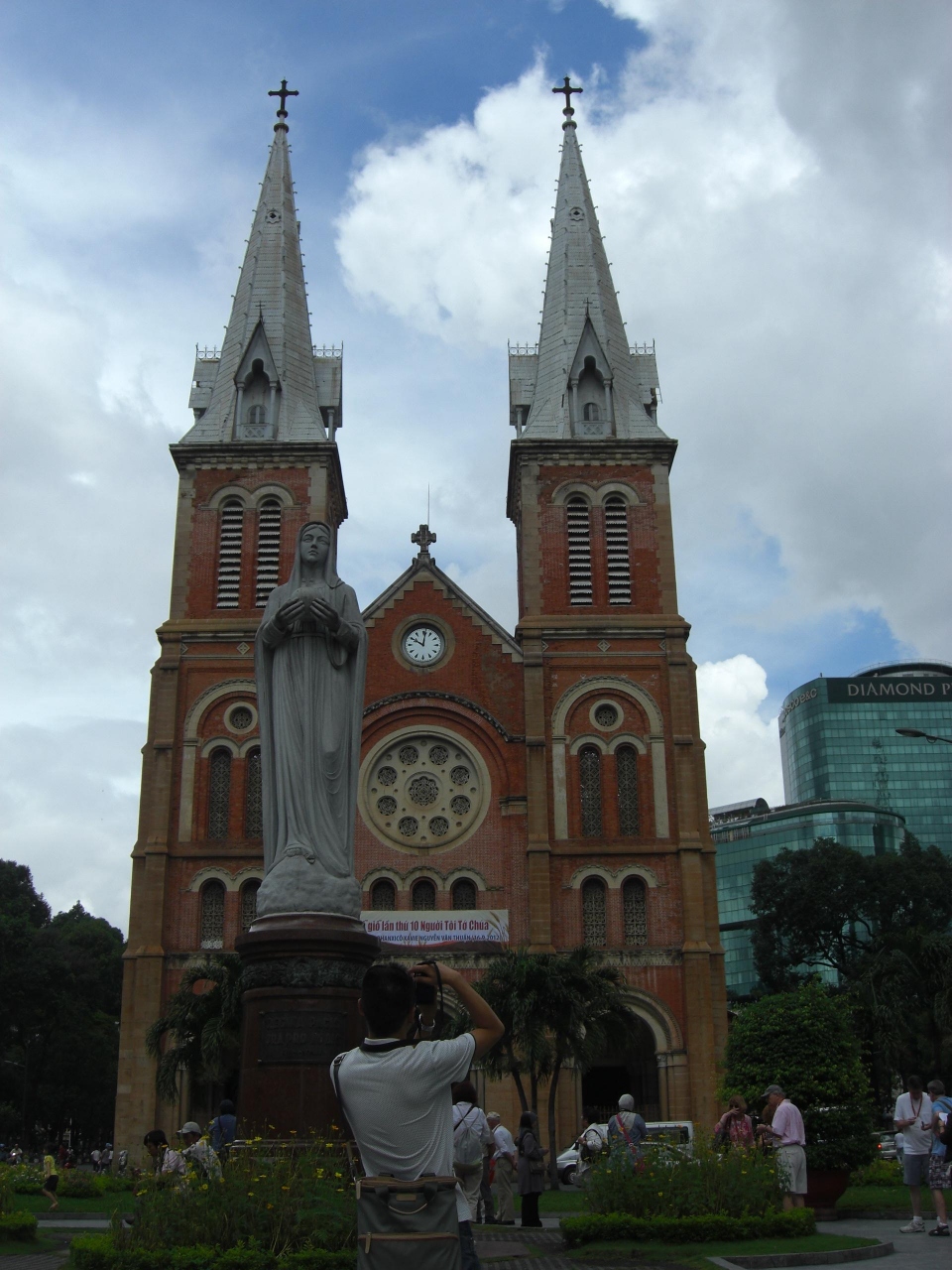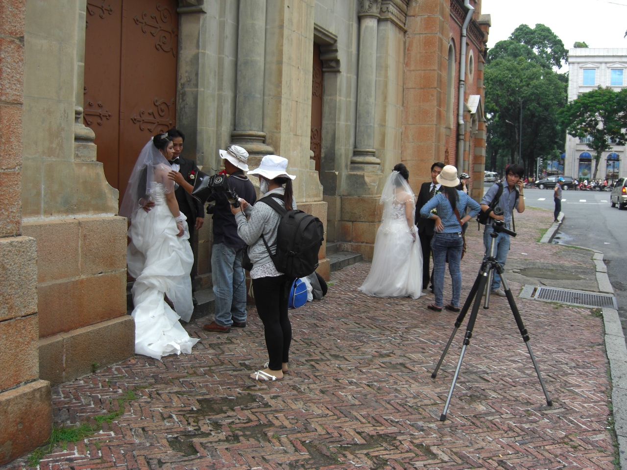 赤レンガ造りの大きなカトリック教会です。日曜日のミサの時間には入りきれないほどの信者の方が来られます。また、この教会は建物が美しいので、結婚式用の記念撮影場所としても有名です。この日も7組が撮影していました。