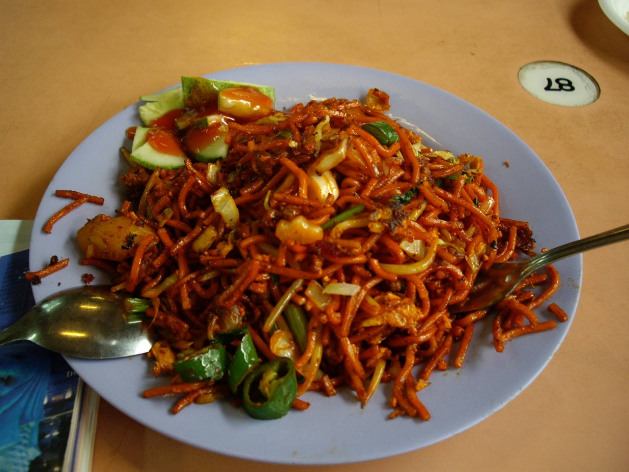 ミーゴレンはケチャップ・マニスと呼ばれている甘い醤油と、唐辛子の効いた辛味調味料、サンバルで炒めたインドネシア風焼きそばです。