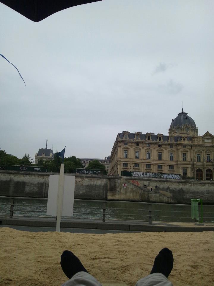 世界遺産・パリのセーヌ河岸では夏の恒例イベントとして一ヶ月間人工ビーチが出現します。お盆休みを利用しての旅行だったのでギリギリ間に合いました。世界遺産の眺めをビーチで横たわりながら楽しむという、贅沢な体験でした。