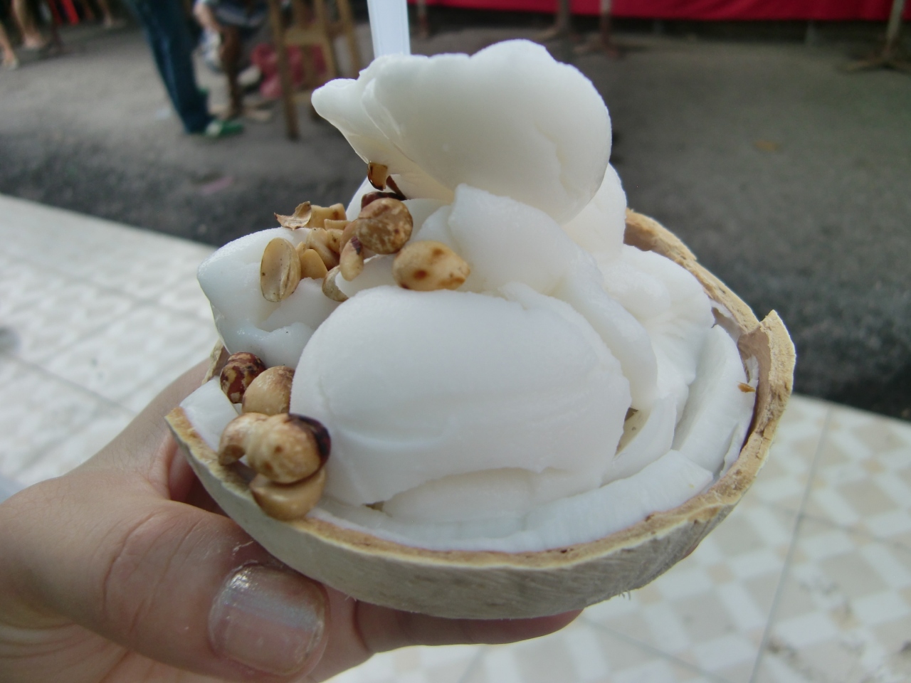 私は民族雑貨や革製品の店を周り、ココナッツアイスで休憩して
