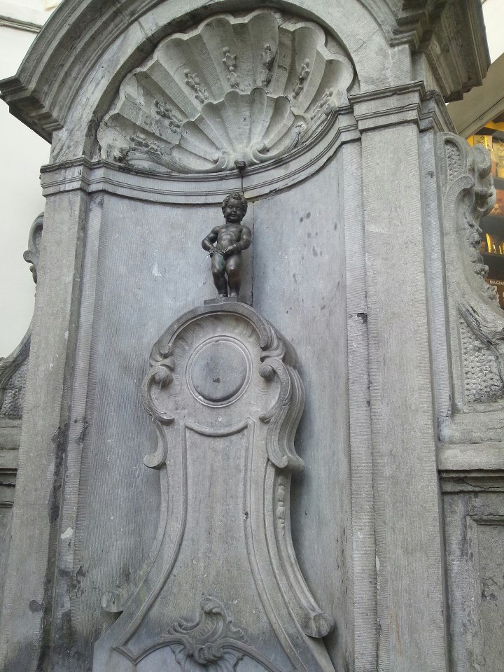 ブリュセルの街の驚くほど小さな一角に佇んでいます。それでも観光客が入れ替わり小便小僧を背景に写真を撮っています。ちなみに隣のワッフル屋の前には緑色でサングラスをかけた悪そうな小便小僧がワッフル片手に立っています。