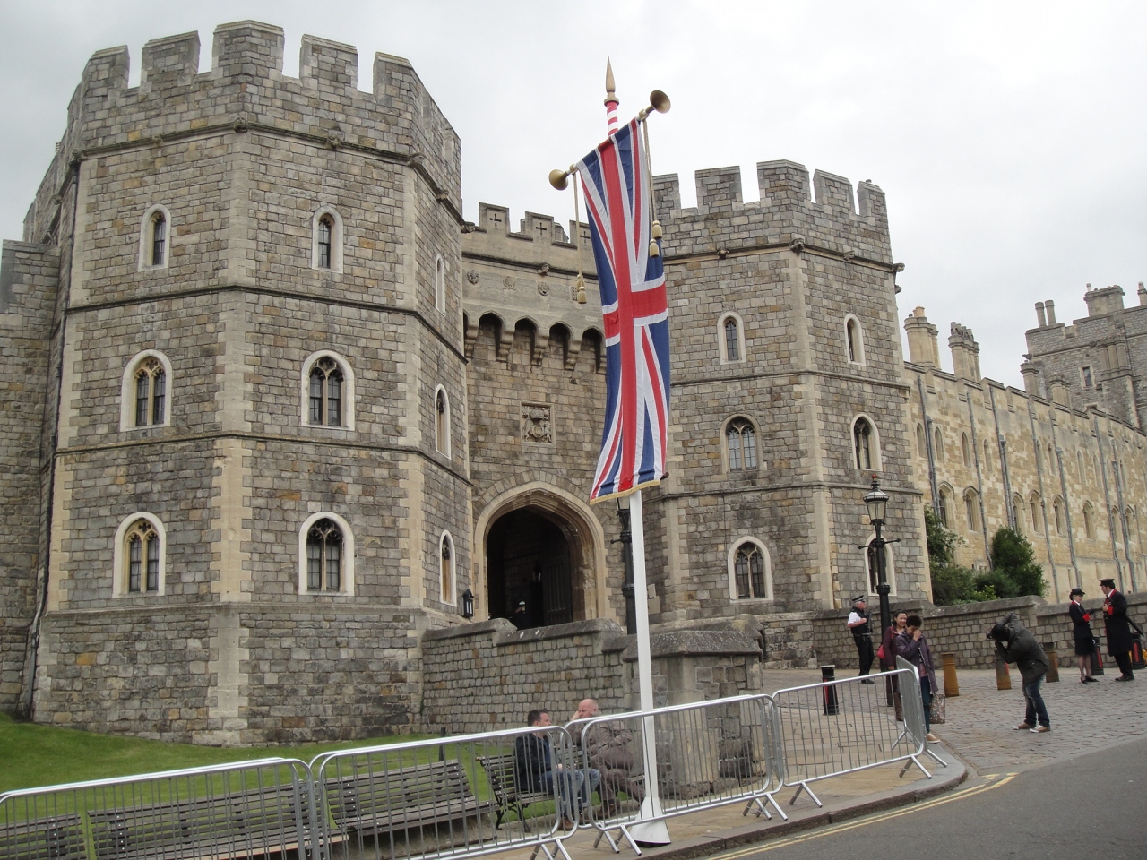 ウィンザー城は約900年前に築かれた砦がもとになっており、その後何度か改築されて現在のような城の姿になりました。入口でセキュリティーチェックを受けると、日本語のガイドを借りられます。(チケットに含まれています。)