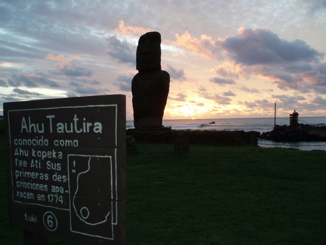 このモアイ像まるで道を挟んで有るサッカー場で村人が球技に勤しんでいるのを眺めているかのようです。