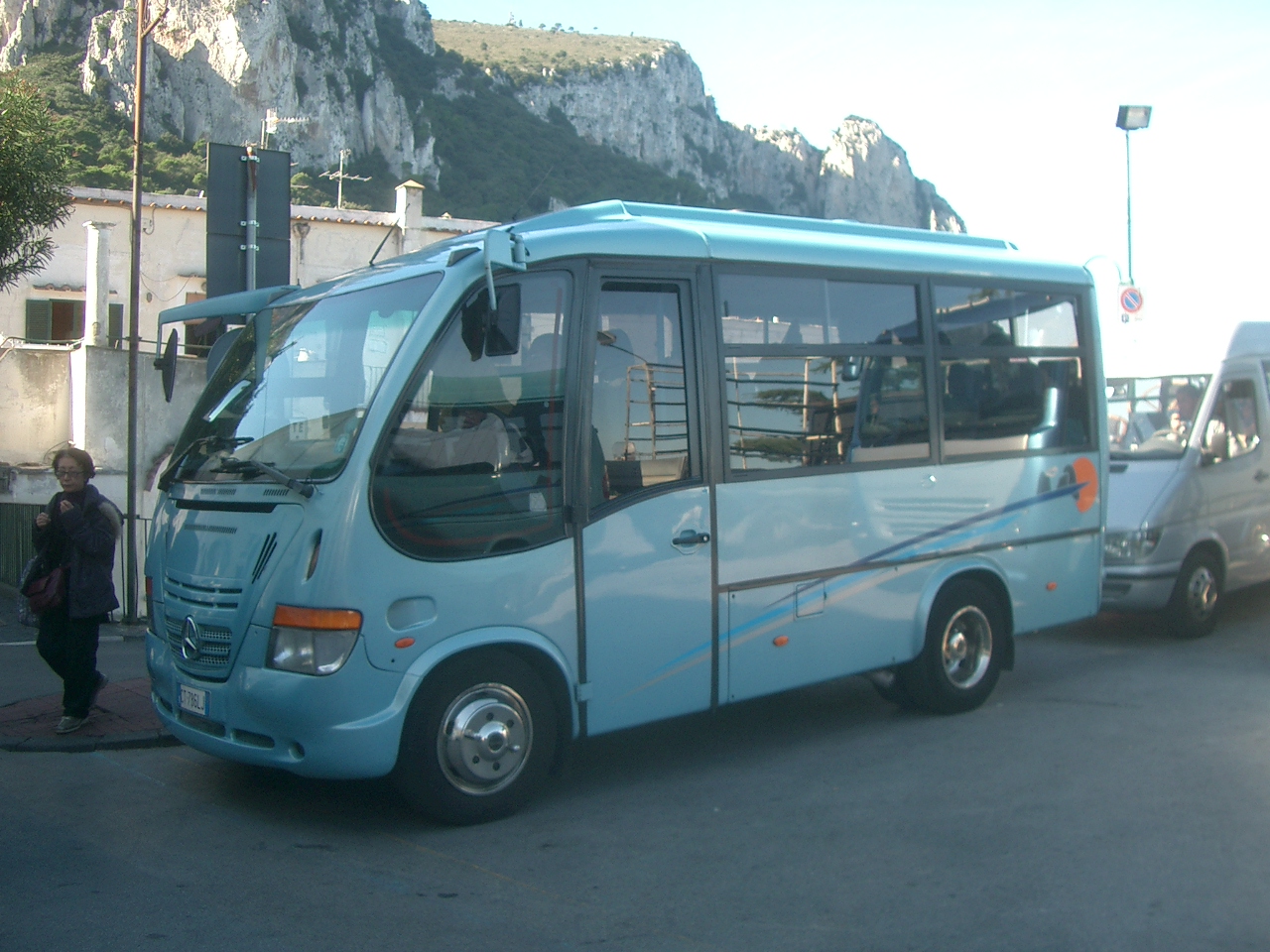カプリ島内の交通はバスが整備されています。停車場もたくさんあり,バスの便も多い良い卯です。行くところも限られているので,時間に余裕のある人はバスを利用すると良いでしょう。小型のバスでとても親近感がわきます。