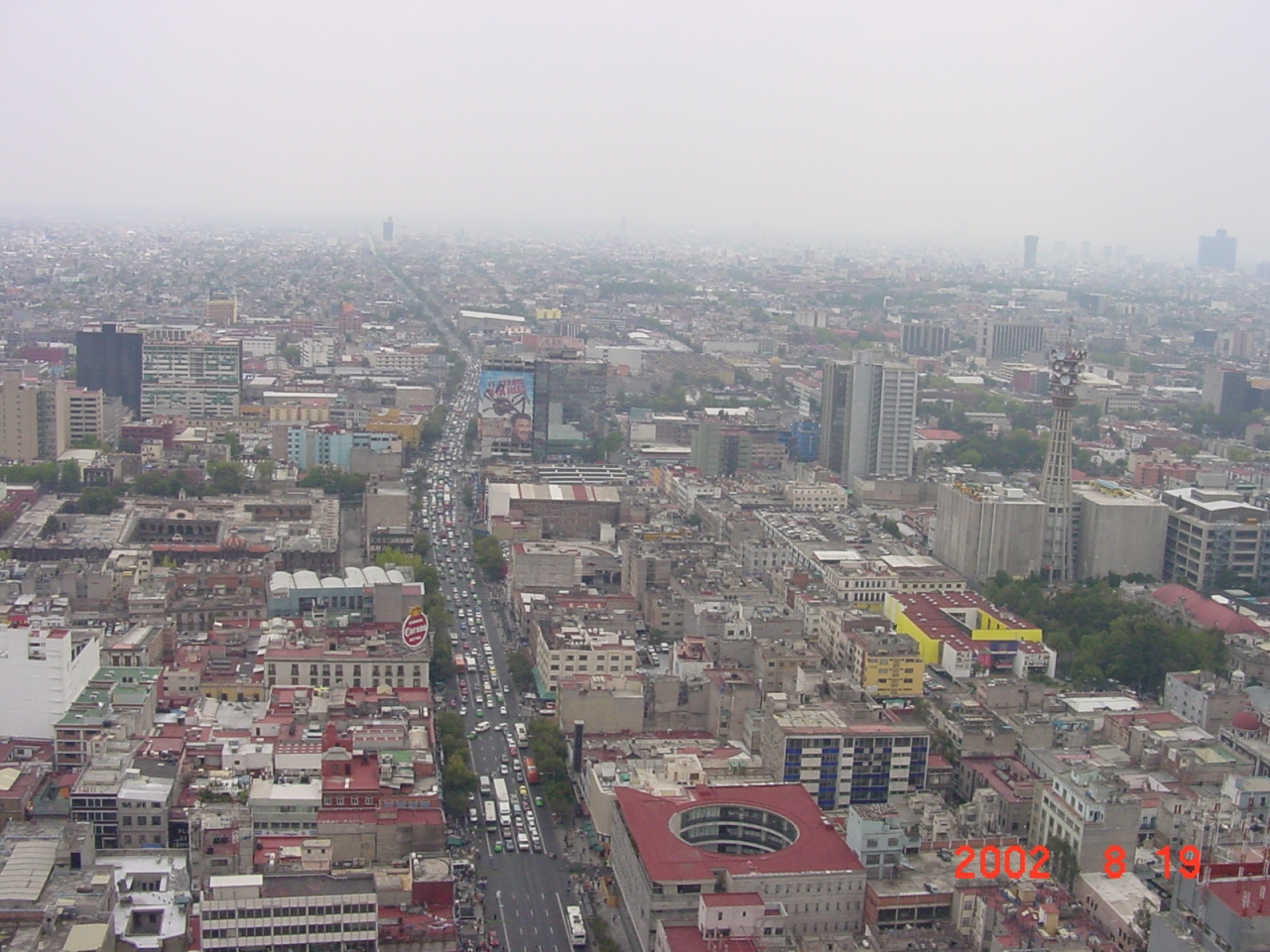 展望室からメキシコシティーを見渡しながら、かって湖の上作られた都市であることや