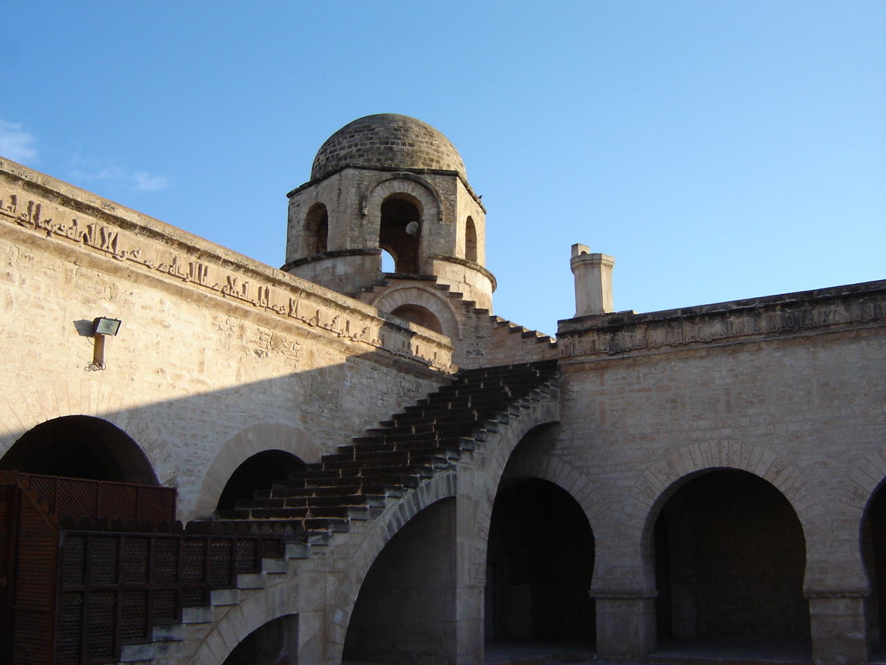 モスクの内部はチュニジアの特産物であるゴザがひかれていましたがそのゴザが模様が入っていて素敵でした。