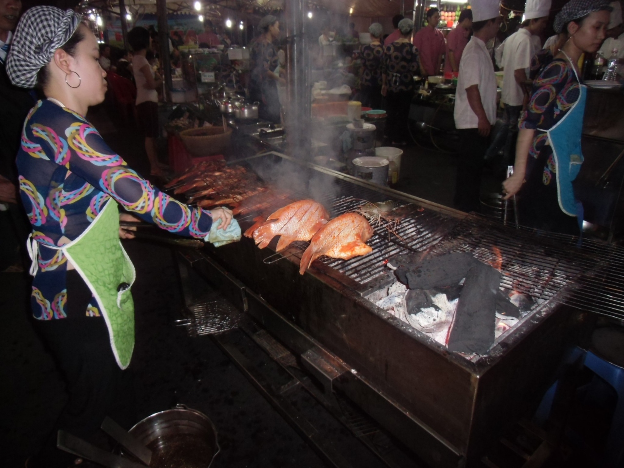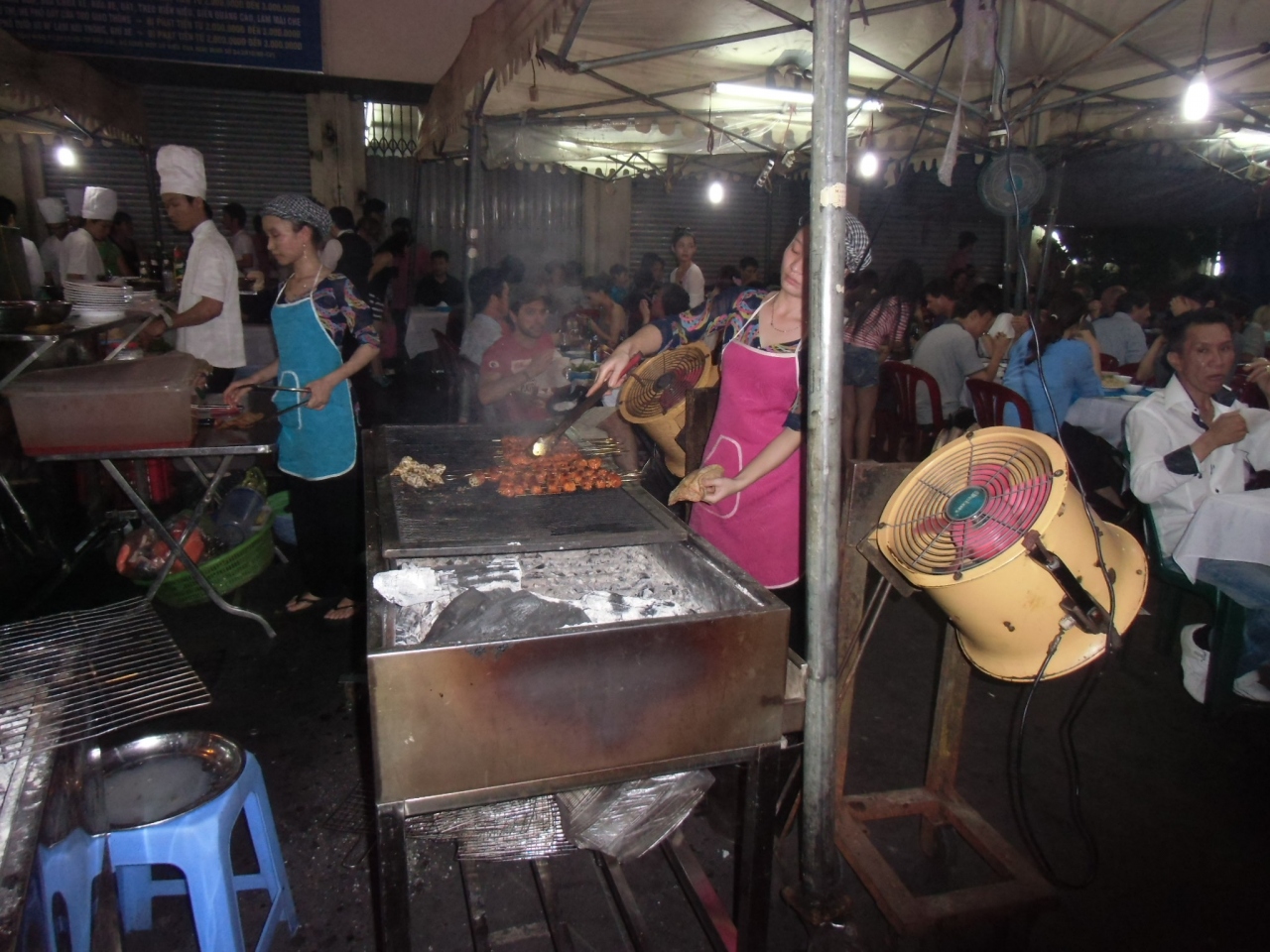 ベンタイン市場が閉まった後、その周辺に屋台のお店がたくさんできます。テントやテーブルや椅子を台車で運んできて、屋台のレストランができていきます。日本語のメニューがある店も多く、値段も提示されていますので、ぼったくられる心配もありません。地元のベトナム人も家族で食べに来ています。安くてメニューも豊富ですので、夕食を食べに行ってみてください。ちなみに一般の食堂や屋台でビニール袋に入ったウエットティッシュが出てきますが、これは使うと3000ドンぐらい請求されます。