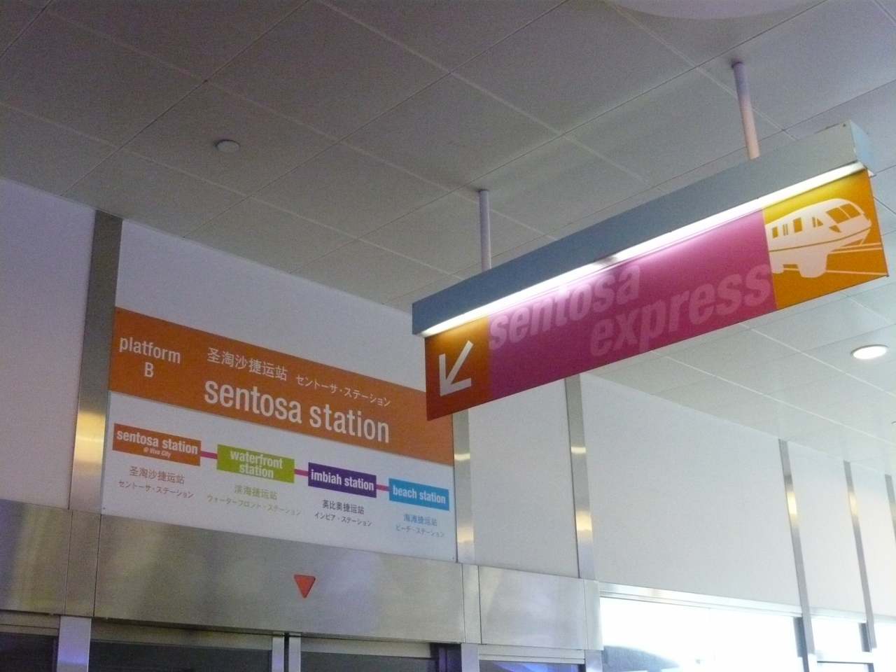 シンガポール本島のハーバーフロントでは、乗り物のあるホームまで行くのに何度もエスカレーターを使ったりと時間がかかりますが、セントーサ島での行き来は短く、直ぐ隣の駅に着いてしまいます。また、セントーサ島内での行き来は自由なので改札もないです。島内を効率よく回るのであれば行動範囲を計画的に考えておくのもいいと思います。というのも、あれはこっち、それはあっちとかになり、いちいちエクスプレスに乗るのは面倒ですからね。。。