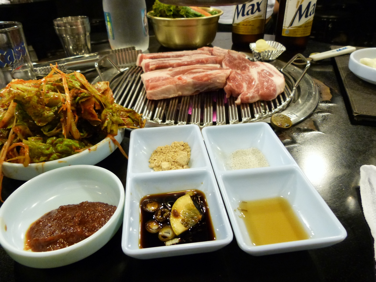 サムギョプサル2人前とビールをオーダー。