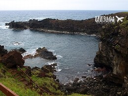 目の前は海で、湾のようになっている場所へ階段を下りていくと、洞窟に入れるようになっています。