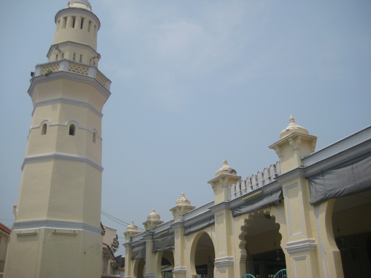 ペナン島のリトル・インディア地区にあるモスクです。スマトラ島のアチェから移り住んだ裕福なアラブ商人が1808年に建てたモスクと言われています。。スマトラ様式のモスクで、ミナレット(塔)につく小窓があります。今でもモスク周辺には子孫たちが暮らしているそうです。
