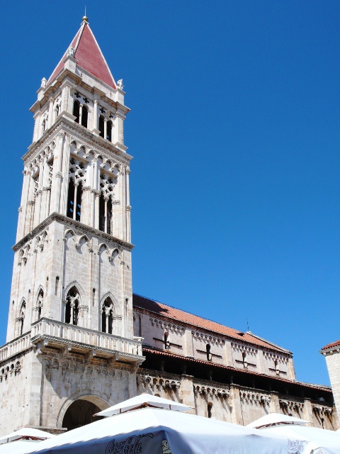 クロアチアのアドリア海沿いには、白壁にオレンジ色の屋根の建物が建ち並ぶ小さな街が点在している。このトロギールもそんな街のひとつだが、古い街並みがきれいに残っており、世界遺産にも登録されている。その街でひときわ目立つのがこの聖ロヴロ大聖堂。白い尖塔とオレンジ色の屋根、青い空とのコントラストが素晴らしい。教会としてだけ見るならヨーロッパの教会の方が豪華絢爛だが、この素朴さが何とも言えない。