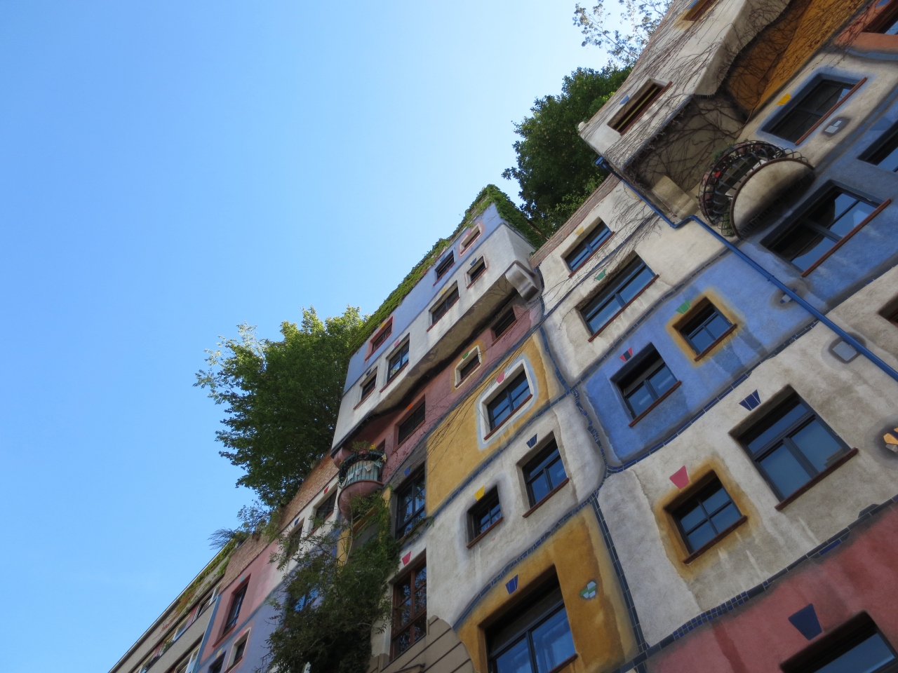 フンデルトヴァッサーの美術館、Kunst Haus Wien から歩いて約5分。ユニークでカラフルな外見のアパートメント。一般住宅なので内部の見学不可なのが残念。向かいにある、フンデルトヴァッサーによるコンセプトで作られたショッピングモール、Hundertwasser Village に立ち寄ってアパートの様子を想像して楽しみました。
