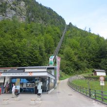バス停 Hallstatt-Lahnの前のスーパーマーケットの脇道の奥、約5分ほどにチケット売り場あり。ハルシュタット湖を眼下に眺めながら、ケーブルカーで山頂に着いてさらに山道を15分ほど登ると見学受付のある建物に着く。保温着を服の上から着て、塩抗の入り口までさらに歩く。